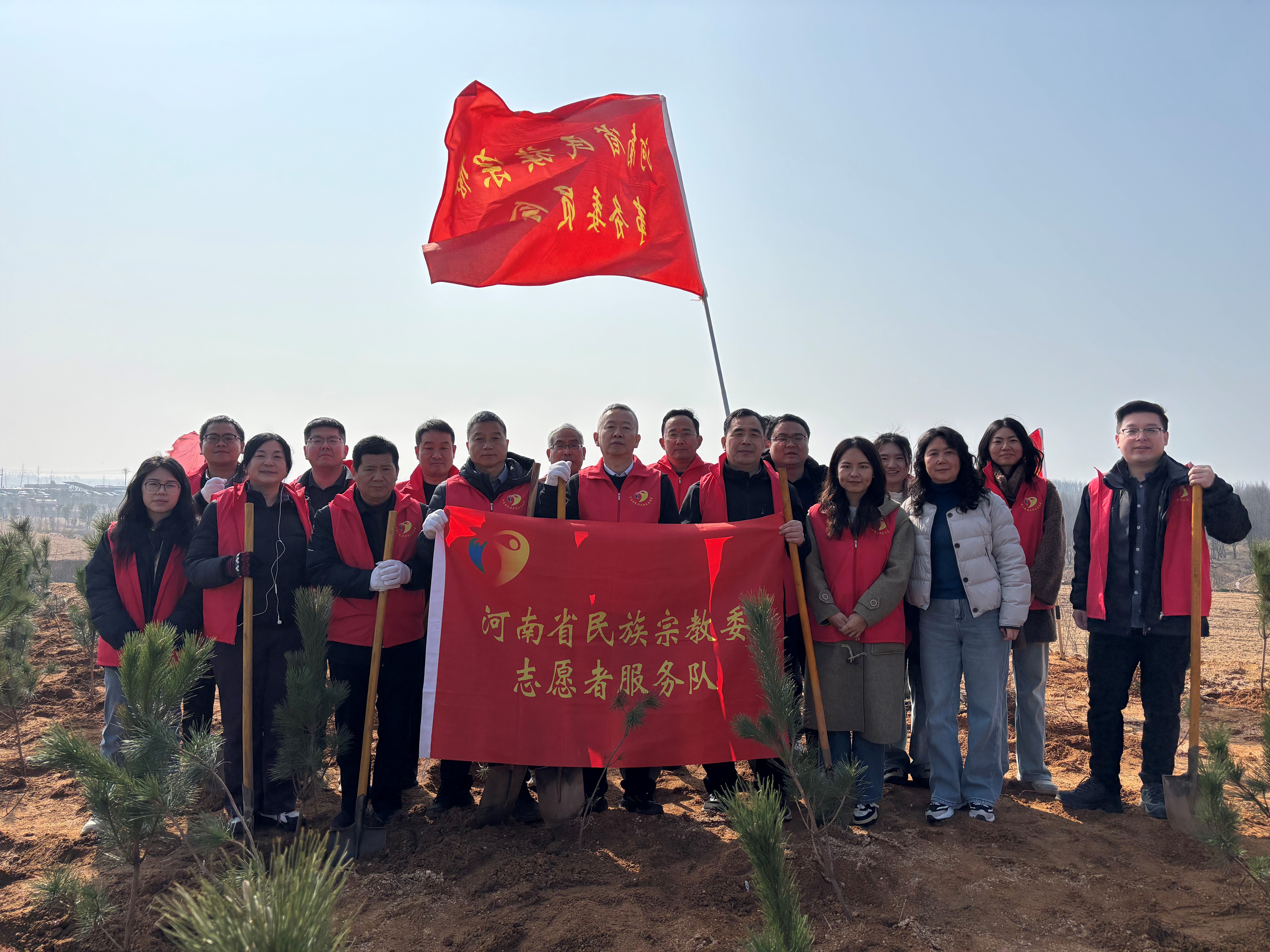 为贯彻落实习近平生态文明思想,积极参与生态文明建设,3月10日,省民族宗教委组织20余名志愿者,赴登封市开展2026年春季义务植树活动,委党组成员、副主任武启祥带队参加。