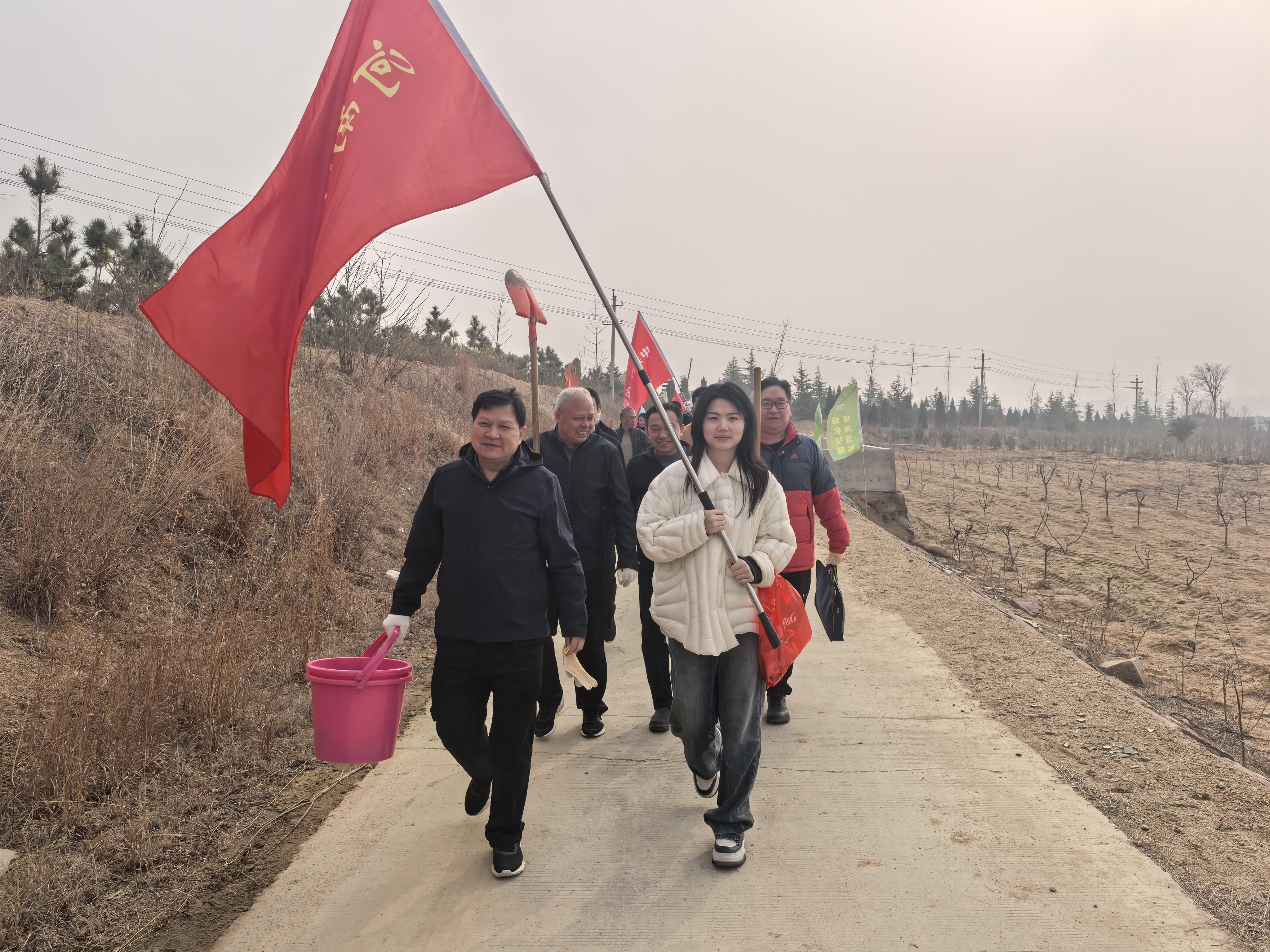 植树现场,大家热情高涨、干劲十足,三五人一组默契配合,扶苗、挥锹、培土、踩实、浇水,各个环节衔接有序,呈现出一派热火朝天的劳动景象。经过辛勤劳作,新栽下的树苗在春风中昂然挺立,为初春的大地增添了勃勃生机。